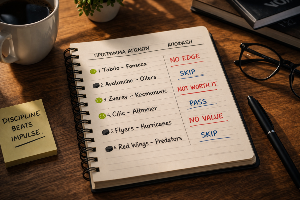 Ένα από τα πιο υποτιμημένα skills στο σοβαρό στοίχημα δεν είναι να βρίσκεις συνεχώς bets. Είναι να ξέρεις πότε δεν υπάρχει λόγος να μπλέξεις.